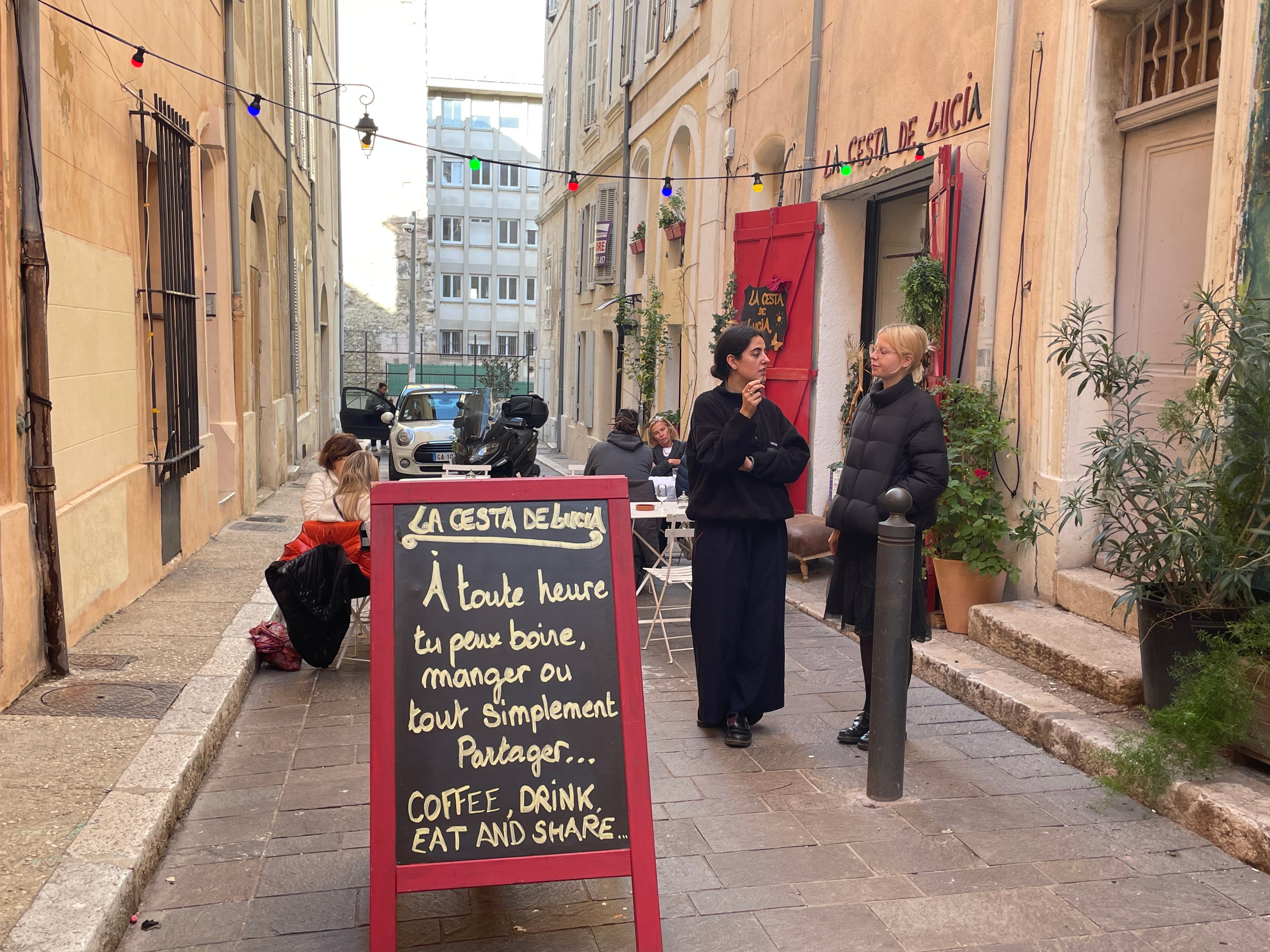 This is in Le Panier, which L tells us is the oldest district in Marseille. There are residents who have been here “forever”. Later, we get an anecdote from a woman who runs a shop nearby. Agnes Varda came in once, she says, but I had no clue who she was (until her friend nudged her). She turned to Agnes- I hear you are famous? Well, I am famous in Le Panier.
