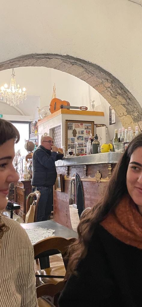 A weekend in Marseille visiting L. It’s Saturday. We’ve spent the morning and most of the afternoon. I am lightheaded, tourist-delirious, giggling for une pression ASAP please, when La Cesta de Lucia appears down a side street. And they have beer on tap. 4 pressions et un chocolat chaud s’il vous plait. It’s 5.30. Our drinks come with some slightly stale cheese puffs. We get out a pack of cards and start to play kabo, hoping to reboot. We’ve found the right spot - calm and warm and domestic. The table by the door is gnarled by candle wax. The walls are spotted with close-up photographs of vegetables. In the corner, a cabinet shows necklaces made of teeth, a fleshy Rubik’s cube, and a revolver.